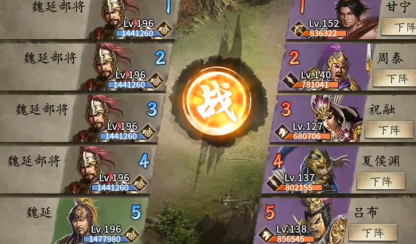 196副本作为游戏中的重要关卡,其核心难点在于敌将战法的高伤害与复杂机制。合理配置武将阵容与装备是通关基础,推荐使用貂蝉、甘宁、夏侯渊、周泰、关羽的组合。貂蝉需配备驱虎套装并携带祝融副将,主要承担吸引敌方战法的职责;甘宁搭配凤凰套装与司马懿副将,通过高频战法输出压制敌将;夏侯渊建议使用烛龙套装,关键时封锁敌方战法;周泰需装备霸下套装与战车系统,承担主力输出;关羽作为收尾武将需配置灵龟套装与曹仁副将,依靠觉醒战法完成最终击杀。