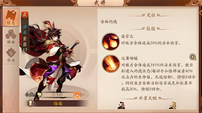 吴国以灼烧和爆发输出为核心特色,神兵选择需围绕武将特性展开。核心输出武将如孙坚、吕蒙优先搭配攻击型神兵,例如雌雄双股剑可提升暴击率与格挡率,强化孙坚的直线爆发能力;诸葛连弩则适合吕蒙的残血收割机制,触发额外攻击概率能加速清场。辅助型武将如大乔推荐携带苍叶绿绮琴,提升治疗效率并增强团队生存能力,而鲁肃、陆逊等灼烧流武将适配火云剑,叠加灼烧效果可显著提升持续伤害。