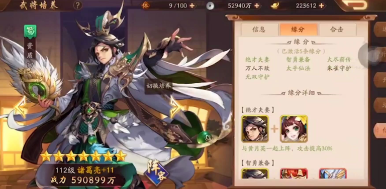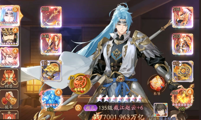 姜维最亮眼的地方在于他的天赋系统,随着突破等级提升,能获得大量生命加成和团队增益。特别是突破到8级时,生命值直接增加40%,还能给全队提供24%防御提升,这让整个队伍的坦度上升一个档次。他和诸葛亮搭配能触发强力的组合技能智勇无双击,这个技能不仅能打前排敌人,还能减少怒气并有概率造成眩晕,同时随机提升一名队友50%伤害,这个联动效果在实战中非常实用。
