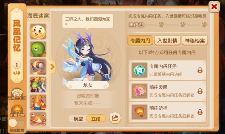 若作为纯任务法宠,建议优先保留魔之心,并补充法术暴击与法术连击,通过掉什么补什么的方式确保三个输出技能齐全。若用于PVP,则需兼顾生存能力,可搭配神佑复生、反震等技能增强容错率。法术认证后需注意物理伤害结果会降低,因此非水系法术认证的龙女需谨慎选择技能组合。专属内丹忆沧海能强化水系法术效果,佩戴套装后还可提升首目标冰冻概率,进一步优化控制能力。