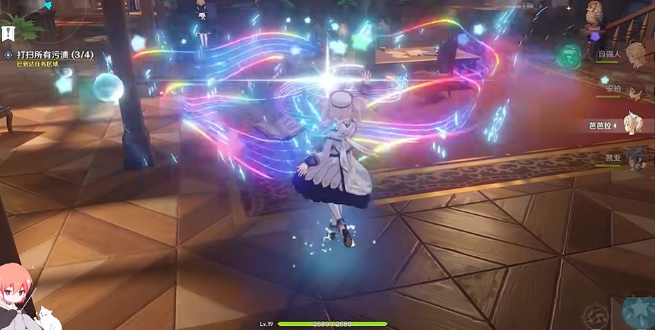 玩家需要清理四处污渍才能完成任务。污渍的清理需要使用风元素或水元素的角色技能,普通攻击或其他元素技能无法生效。推荐使用风属性主角的长按元素战技(E技能),蓄力过程中产生的风球能有效清除污渍。水元素角色的大范围技能同样适用,但需注意技能冷却时间。