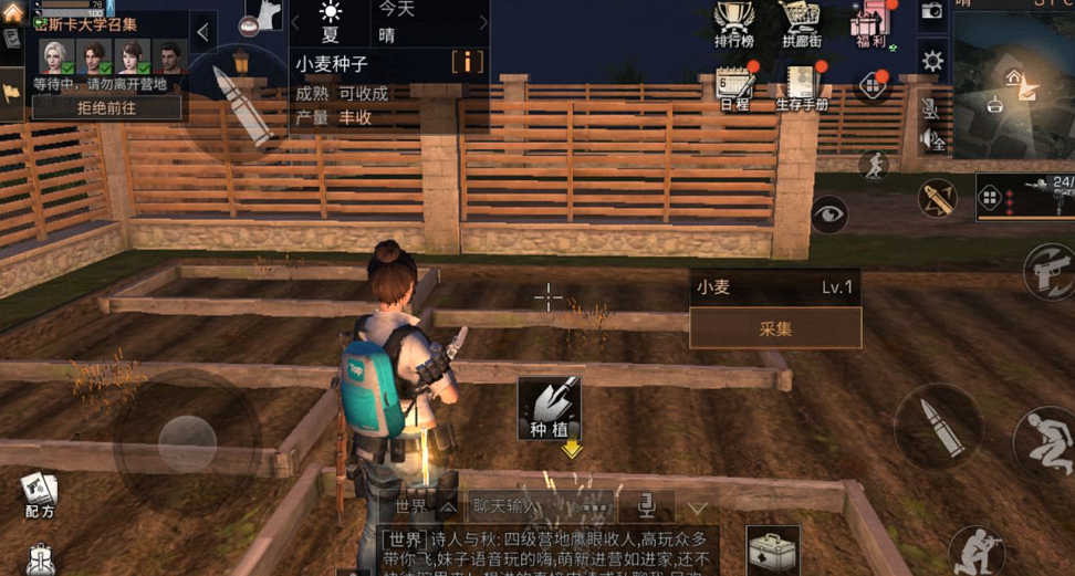 作物成熟后需及时收获,部分植物有特定采集工具要求。收获的农产品可直接食用或通过加工台制作为高级食物,例如果汁、果酱等能提供更强生存buff。未及时收割的作物会枯萎消失,建议设置成熟提醒。为提高效率可采用轮作制度,交替种植生长周期不同的作物。与营地成员合作种植能共享资源,但需注意防盗措施。