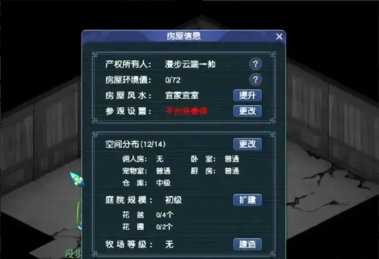 建造牧场需要满足两个核心条件:角色等级达到50级及并且已拥有任意类型的房屋(民宅、华宅或豪宅均可,风水无要求)。满足条件后,前往大唐境外(坐标207,102)找到NPC张猎户,支付100万两银子领取建造牧场任务。任务需要收集木材、制作饮水槽等材料,完成后返回张猎户处交付,牧场即会出现在玩家房屋的庭院中。初期牧场为初级规模,后续可通过积分升级至中级、高级牧场。