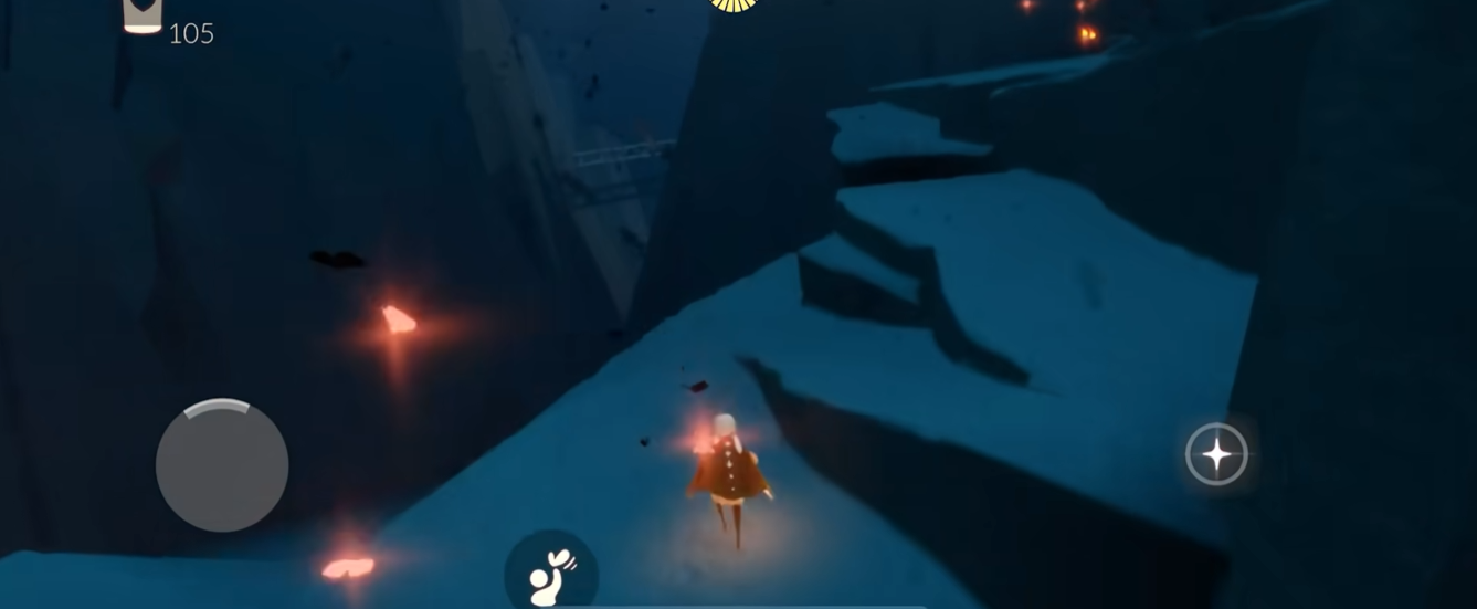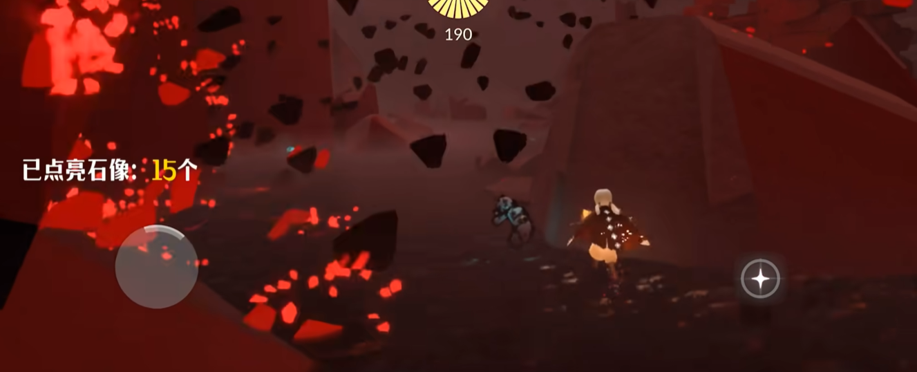 强风会阻碍飞行,需全程贴地行走或跳跃。落石攻击有固定间隔,观察黑色颗粒速度变慢时即可快速移动至下一掩体。冥龙巡逻路线固定,需在其转头时冲刺至安全区域,如管道或矮墙后。红石会持续吸收能量,必须远离。若被冥龙锁定,可迅速躲至小金人附近角落,被撞击时点击小金人可避免光之翼掉落。