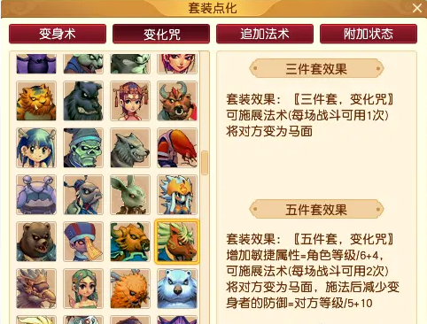 变化咒套装是传统法系宝宝的首选,提供稳定的伤害加成,适合长期作战。但由于其持续回合有限,在速推队伍中可能不如即时生效的魔力套实用。魔力套(如灵鹤、炎魔神)能直接提升灵力属性,且触发后无回合限制,更适合追求爆发输出的高速法宠。若队伍缺乏驱鬼单位,高驱鬼套装能针对性提升对鬼魂类怪物的伤害,但需权衡其对常规输出的影响。