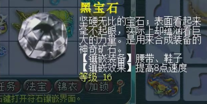最常用的两种宝石是黑宝石和光芒石,黑宝石加速度,光芒石加气血。如果喜欢PK或者追求先手优势,黑宝石是首选,每级能提升8点速度,抢在对手前面出手很关键。如果更注重生存能力,尤其是任务和副本中,光芒石每级加40气血,能让咱们站得更稳。