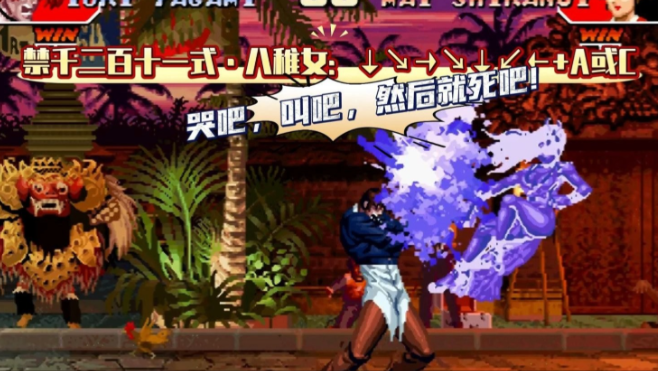 关键技能如屑风、葵花和八稚女的操作指令与普通八神相同。屑风作为核心投技,命中后可强制衔接其他技能;葵花三段是主力伤害来源,最后一击带有击飞效果;八稚女作为超必杀技,需消耗能量条但具备无敌帧。暴走状态下,这些技能的释放速度提升,但收招硬直并未减少,盲目进攻仍可能被反击。