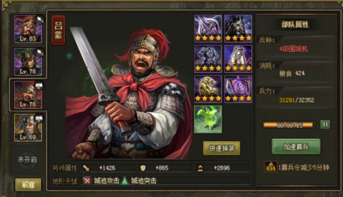 替代方案中,严颜可作为备选武将,其攻城战斗力加成25%的特性在低等级时仍能发挥显著作用。严颜需穿戴剩余的高品质装备,并在最终阶段与姜维正面对抗。貂蝉、祝融等武将也可尝试加入阵容,但效果不如常规组合稳定。若装备不足,可优先洗练强防、血量属性,临时替换低效属性以应对副本需求。