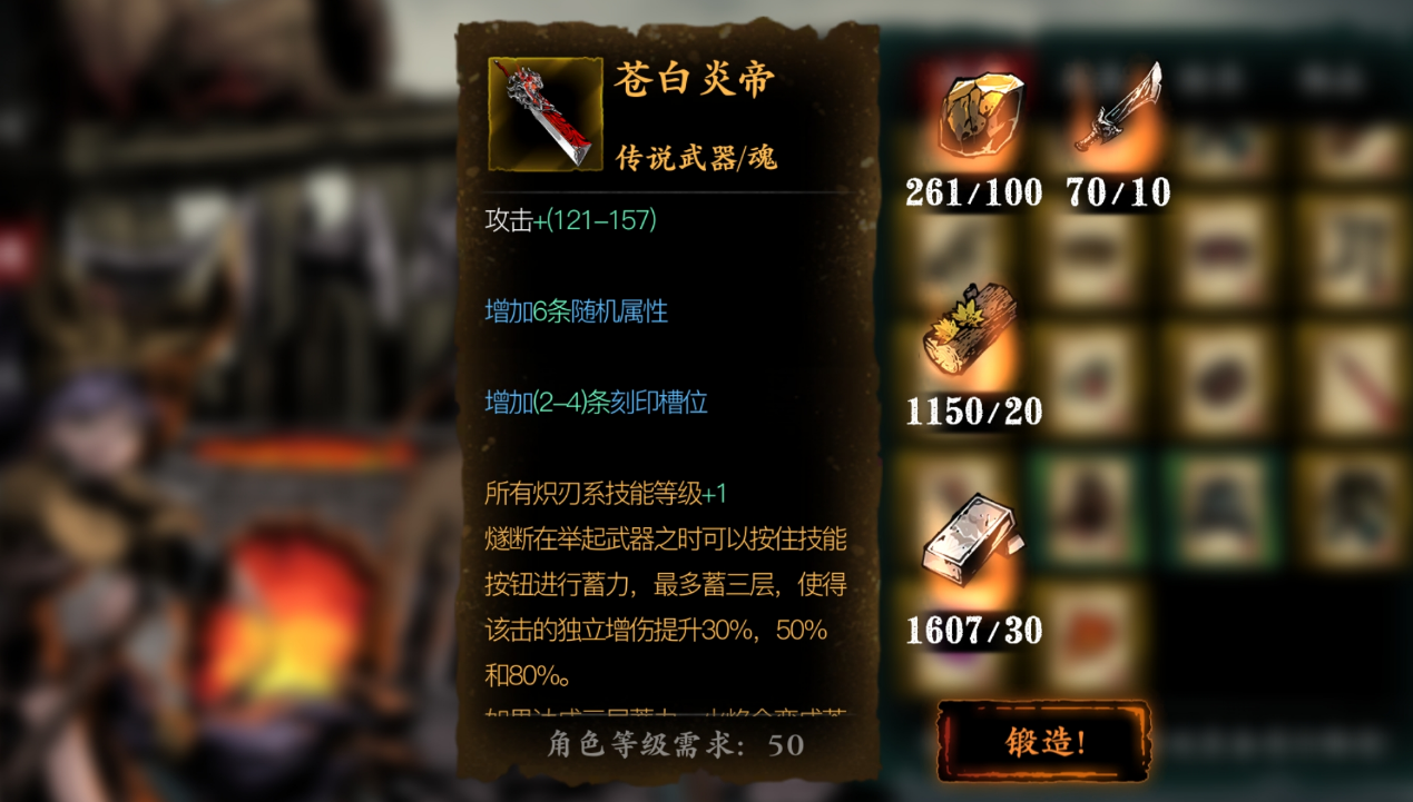 收集到图纸后,接下来就是准备锻造材料了。传说装备需要的材料比较稀有,比如黑魔伤需要破军令、陨铁、黄花梨木等,苍白炎帝需要斩罪残刃、黑钢等。这些材料主要通过刷特定副本获得,比如正道陨落活动本可以掉落材料,也能用活动中获得的铁币兑换。