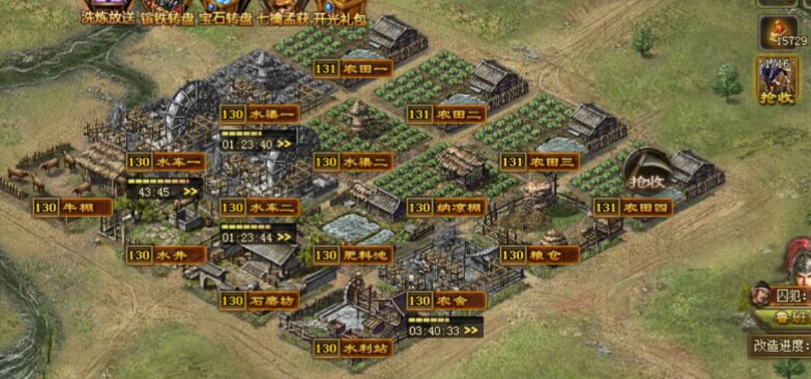 农场改造作为165级阶段的终极目标,其核心机制是通过粮食产能提升强化兵力恢复速度。完成木场改造后,农场将开放三个位置的升级槽位,需消耗特定图纸并按固定顺序解锁。首阶段改造会赠送15张基础图纸,但必须优先用于农田首个槽位才能激活后续进程。改造后的农场每小时粮食产量增幅约20%-30%,同时解锁高级屯田科技的前置条件。由于粮食直接关联武将练级和国战持续能力,建议在资源允许时优先完成农场全区域改造。