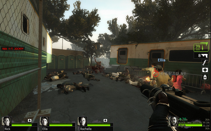 队伍中建议配置1名治疗特化(携带医疗包的Coach)、1名近战输出(Ellis)及2名远程火力(Nick与Rochelle)。对抗模式中,Boomer的胆汁喷射与Hunter的飞扑需通过团队集火化解,转职技能的协同性比个人能力更重要。语音沟通能有效协调技能释放时机,例如Ellis的狂暴状态开启后,队友应提供火力掩护。