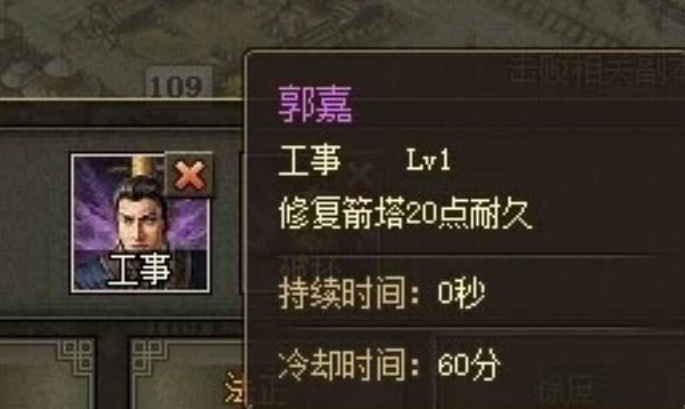 修箭塔可是保护咱们城池的重要活儿。箭塔能自动攻击敌人,帮咱们减少不少防守压力。想要修好箭塔,首先得确保城池是咱们自己的,不然可没法动手。文官郭嘉的工事计策是修箭塔的关键,每次能恢复20点耐久度,不过有冷却时间,得耐心等。