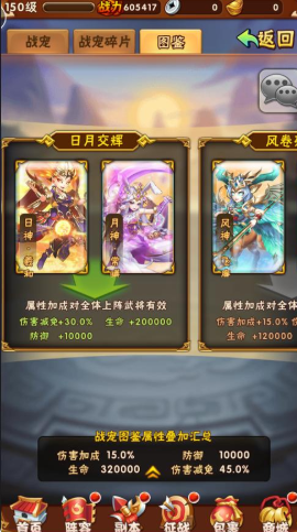日神的优势在于对攻击属性的直接增幅,其技能可强化武将的暴击与伤害加成,尤其适合搭配高爆发武将如吕布、赵云等。在速攻流或PVE推图场景中,日神的增伤效果能快速压低敌方血线,缩短战斗回合。但需注意其惧怕火系技能的弱点,面对以周瑜、陆逊为核心的火烧队时需谨慎使用。月神的幻影防守特性则能有效抵消敌方首轮爆发,为队伍争取反击空间,尤其在PVP对抗中表现稳定,但需警惕鬼系技能的克制效果。