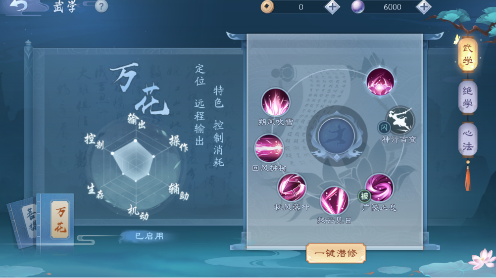 武当作为远程输出职业,其心法天赋分为通用效果、玩家对抗和副本挑战三个方向。通用效果适用于所有场景,玩家对抗侧重PVP切磋,副本挑战则针对PVE内容。天赋点分配遵循3-1-1的固定次数限制,玩家需根据实际需求灵活调整。武当在战斗中通过释放技能积攒剑气,最多储存5点,消耗剑气可触发不同效果的职业技能,剑气管理是输出最大化的关键。