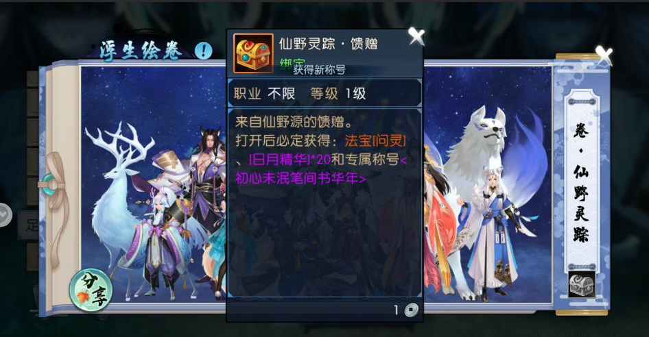仙野源相关的绘卷玩法主要关乎浮生绘卷录系统,它并不是一个可以直接在商城购买到的成品道具。这个玩法更像是一个需要你亲自去探索和完成系列任务的收藏系统。激活绘卷后,你不仅能深入了解新地图仙野源各个角色的背景故事,欣赏专属的主题曲,还能拿到包括法宝、精华和专属称号在内的丰厚奖励。整个获取过程融合了任务、探索和一定的收集要素,是深入体验仙野源剧情和获取稀有奖励的重要途径。