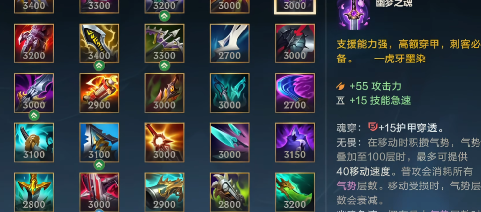 螳螂要想爆发高,核心思路就是堆护甲穿透和攻击力,让技能和普攻的伤害最大化。目前最主流也是爆发最高的出装路线是穿甲流,第一件装备毫无疑问要选择幽梦之魂或者德拉克萨的暮刃,这两件装备能提供高额的攻击力和穿甲属性,尤其是暮刃的被动,在脱离敌人视野后下一次攻击会造成额外伤害并附带一个超强的减速效果,这让你在草丛埋伏或者利用大招隐身接近敌人时,能打出出其不意的致命一击,瞬间的爆发伤害会非常高。紧接着第二件可以补出另一件穿甲装,比如说你先出了幽梦就补暮刃,先出了暮刃就补幽梦,这样两件套的时候你的穿甲值就非常可观了,面对脆皮英雄几乎能打出接近真实伤害的效果。鞋子方面一般选择水银之靴来减少被控制的时间,或者选择铁板靴来对抗物理伤害高的阵容,附魔首选水银饰带或者石像鬼石板甲,前者能让你关键时刻解控逃生或追击,后者则能提升你进场后的生存能力,确保你能打出一套完整的技能。