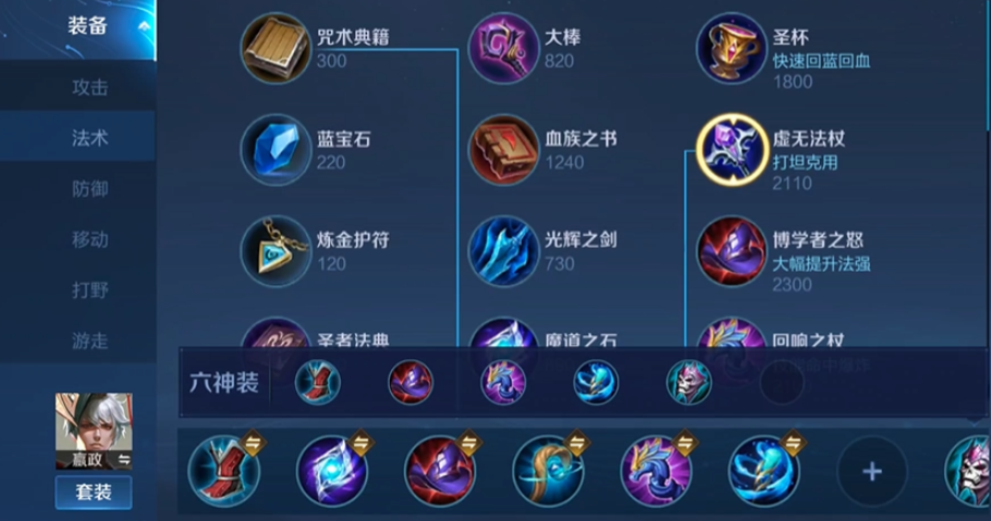 游戏到了中期,出装就要看场上情况了。做完帽子之后,通常需要补充法术穿透装备,因为对手可能开始出魔女斗篷了。这个时候虚无法杖(法穿棒)和痛苦面具都是不错的选择。痛苦面具能提供生命值、冷却缩减,其被动技能对坦克英雄有额外的百分比伤害,对付前排很有效;而虚无法杖提供高比例的法术穿透,专门克制高魔抗的对手。你可以根据对面谁是威胁最大的点来决定先出哪一件,如果对面坦克很肉,先出面具;如果脆皮出了魔抗,可以先做法穿棒。如果对面有蔡文姬、曹操、程咬金这类回复能力很强的英雄,记得要把痛苦面具换成梦魇之牙,用它来限制敌方的治疗效果。