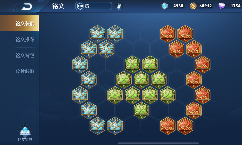 爆裂流铠的铭文选择也是围绕暴击和穿透来的。红色铭文推荐带祸源或者无双,祸源提供稳定的暴击率,无双则追求更高的暴击效果。绿色铭文带鹰眼,增加物理穿透是战士的标配。蓝色铭文可以选择狩猎,提供攻速和移速,让铠的走位和追击更顺畅。