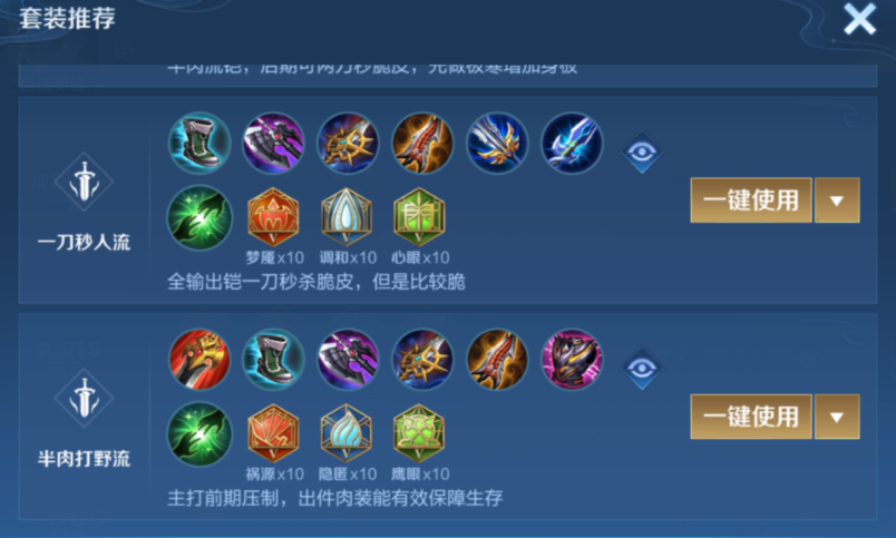 到了游戏后期,出装就需要根据战场情况灵活调整了。如果对面法师伤害很高,可以补一件魔女斗篷;如果物理爆发强,反伤刺甲或者不祥征兆都是不错的选择。在保证生存的基础上,可以继续补充破军来进一步提升收割能力,或者出保命装备名刀司命、贤者的庇护来增加容错率。后期团战不能无脑第一个冲进去,最好等队友先手或者从侧面、后方进场,直切敌方核心输出位。