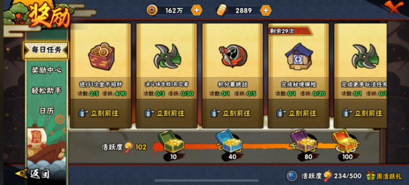 如果你想在游戏前期快速搞战力,那得先从最基础的日常任务和资源积累开始抓。每天上线把能做的任务全清了,这些日常给的铜币和经验值看起来不多,但日积月累下来就是一笔非常可观的资源,是你升级忍者和装备的原始资本。千万别小看每天扫荡十次精英副本,这是获取忍者碎片最稳定的途径,忍者星级上去了,战力加成是实打实的。另外像小队突袭这样的玩法,如果你手头金币够用,前期非常建议开启三倍奖励,虽然消耗大点,但换来的声望、忍玉和秘卷碎片都是后期极为关键的战力成长材料,早点攒起来没坏处。