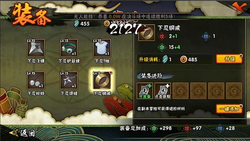但前期资源有限,一定要集中火力,千万别雨露均沾。建议你先集中培养一两个主力A忍或S忍,通过刷精英副本、组织祈愿这些方式把他们的碎片攒起来升星,一个五星A忍带来的战力飞跃是巨大的。至于那些顶级的SSS忍者,属于长远目标,前期随缘抽到最好,抽不到也不用强求。记得把忍者的技能等级点上去,学习新的忍术也能丰富你的战斗手段,这些都会直接反应在战力数值上。