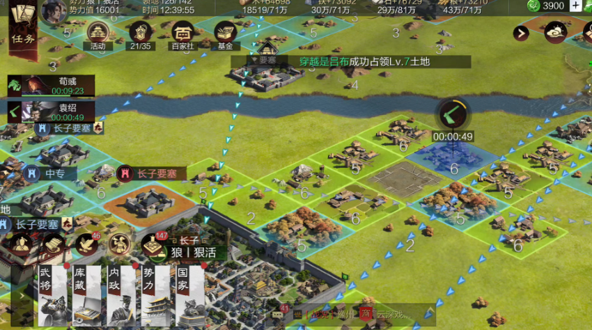 战斗和开荒技巧需要玩家掌握兵力管理和打地策略,初期以占领2-3级土地为主,逐步扩展势力范围。当武将等级达到10级且兵力超过3000时,可以谨慎挑战四级土地,升级到13-14级则能尝试五级土地。攻打高等级土地时,注意行军距离,距离越远,敌人兵力越高,远程攻击要特别小心。探路是开荒中的重要步骤,使用斯巴达队伍无需征兵,直接探路以减少资源损耗;注意土地连接,逐格铺路,避免无功而返。兵力损失在开荒中很常见,低损打地是提升效率和资源的高效方法。