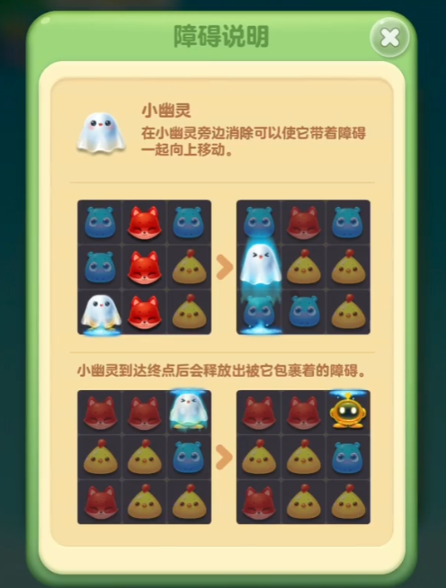 幽灵是一种会随机跳跃的特殊障碍物,它分为普通状态和愤怒状态两种形式。在普通状态下,幽灵会你的操作在果冻块之间转移位置;愤怒状态下它则会主动随机跳跃,增加消除难度。要让幽灵上升,关键是在幽灵旁边进行消除操作,每次你在幽灵附近完成三消或者使用特效时,幽灵就会带着包裹的元素一起向上移动一步。理解幽灵的基本行为模式是应对它的第一步,比如观察它的初始位置和可能的移动路径,这样你才能有效预判并控制它的移动。幽灵通常包裹着一些关键元素,比如小动物或收集物,当它上升时这些内容也会跟着移动,所以你需要优先在幽灵周围制造消除机会,特别是那些直接接触幽灵的方块最有效。通过这种方式,幽灵会逐步向屏幕顶端移动,最终退出画面。