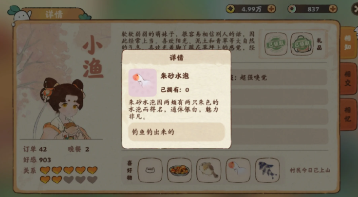 邀请村民到家中吃饭也能间接处理鱼类。每天你可以招待三位村民,如果他们偏好的食物中包含鱼类,你提供后就能提升好感度,同时获取玥琅和叮珰等额外奖励。这种方式不仅处理了鱼类,还加强了与游戏角色的互动。