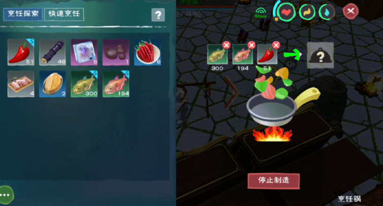 所有材料都备齐之后,制作过程就非常傻瓜式了。你需要找到一个烹饪的地方,就是那种烹饪锅或者烹饪炉。走过去点开它,选择烹饪功能,然后把背包里的红鲤鱼、绿鲤鱼和辣椒一个一个放进去,放完之后点击烹饪按钮,稍等一会儿,一道热乎的川椒鲤鱼就做好了。整个过程完全没有技术难点,系统会自动帮你合成,你只需要确保材料没放错就行。