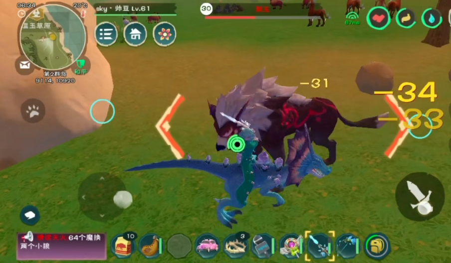 开始捕捉的时候,记得先用武器把狼王的血量压制到30%以下,别打太狠免得直接打死了。然后用木棒把它敲晕,等狼王头上出现爱心标志的时候,赶紧使用捕捉器来收服,这个过程要干脆利落,避免狼王醒过来逃跑或者回血。狼王的资质有个体差异,极品狼王生命资质可能达到2.9,攻击资质1.5,而沙漠狼王可能更高一些,适合用作融合材料进阶成高阶宠物。