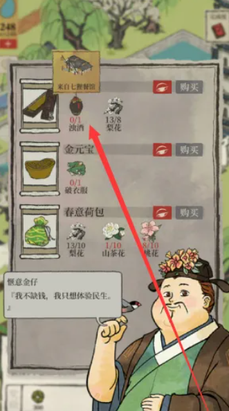 除了上述的布匹店,部分攻略也指出在地图右下角一个名叫彩绘居的店铺里同样可以兑换到浊酒。玩家进入彩绘居后,在提供的兑换物品列表中寻找浊酒,并按照要求提交相应的材料来完成兑换。这个位置对于完成修桥工人等相关任务至关重要。