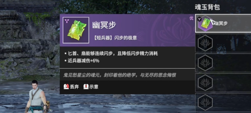 匕首的金色魂玉鬼哭神嚎能显著强化闪步后的攻击,其触发机制有明确的步骤。玩家首先需要装备该魂玉并手持匕首,在使用匕首进行任意一次攻击,无论是普通攻击还是蓄力攻击迅速按下Shift键触发一次特殊的闪避动作,即金色闪步。在角色进入金色闪步的金色霸体状态时,快速连续点击两次鼠标右键,或者按住右键不放,即可成功释放鬼哭神嚎,角色会做出一个腾空踢腿的酷炫动作。整个技能过程分为两个阶段:第一段是闪步结束后的突进,此阶段为金色霸体,普通攻击无法打断;第二段是跳起踢腿,此时转为蓝色霸体,该阶段可被振刀克制,但也能打断对手的普通攻击。由于释放时没有明显的闪光或音效提示,对手难以直接预判,为使用者提供了一定的博弈优势。