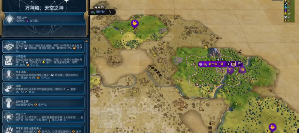 除了明确的胜利路线,开局时的资源分布是另一个决定性因素。如果首都周围拥有大量可供改良为牧场的资源,如牛、羊、马,那么选择天空之神能为你提供珍贵的早期文化值,有效加速市政树的解锁。同理,如果种植园类资源丰富,节庆女神提供的文化加成也十分可观。这两种选择都能直接缓解秦始皇在获得城堡科技前可能面临的文化压力。