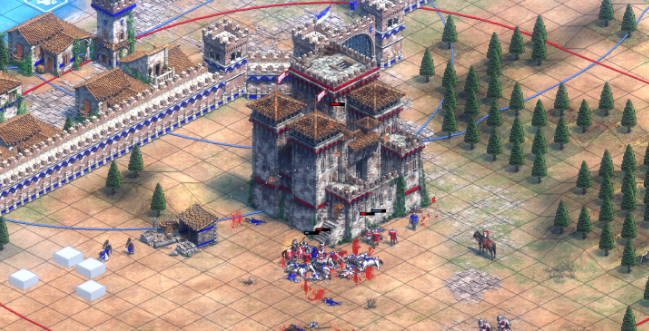 开局时,咱们会控制熙德和一小队人马在地图中央建立基地,这时候别急着开战,优先让村民快速采集木材和食物,把经济搞起来才是王道。在稳定发展的同时,记得派侦察骑兵向西边角落探路,找到圣物的具体位置。探索时优先找那些废弃房子,能获得额外资源,顺手把地图中央的免费军队收编了,以增加前期兵力。找到西侧的圣物后先别急着拿,应该先观察修道院周围的守军情况,避免过早正面冲突。