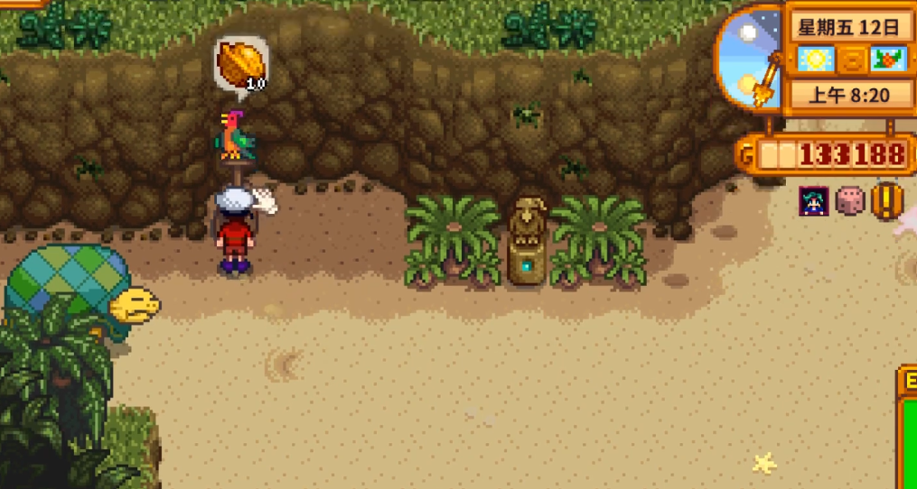 初次登上姜岛时,通往岛屿各处的道路并非全部畅通。下船后,你会发现前往北部和西部的路径被巨大的海龟阻挡,此时你需要跟随新出现的NPC雷欧,前往岛屿东部的丛林区域。进入雷欧的小屋后,与屋内的鹦鹉互动是关键,你需要支付1个名为金核桃的特殊货币来获得进一步的行动指引,这是开启东部乃至整个姜岛探索的第一步。