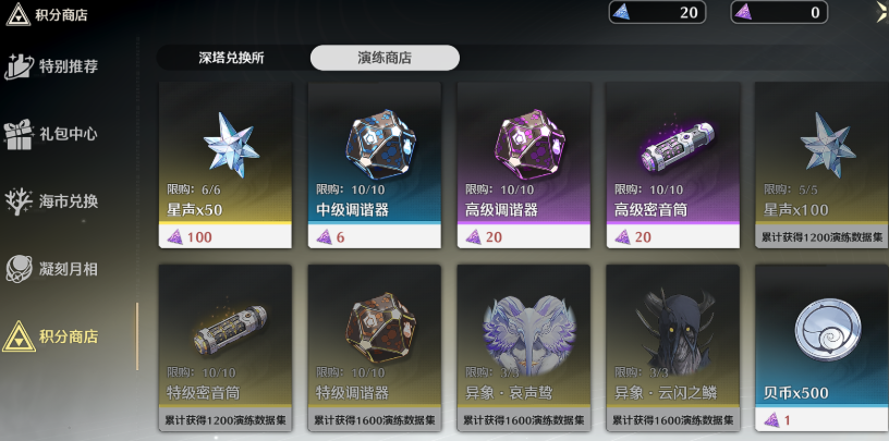 另一种更稳定的解锁方法是使用商店兑换,这主要用于获取限定数量的异象哀声鸷。你需要先打开游戏内的商店界面,在左侧列表中找到并进入积分商城,然后选择其中的演练商店选项。在演练商店中,你需要先花费1600点演练数据来解锁异象·哀声鸷的购买权限,之后每次购买需要消耗600代币,并且该物品存在限购。