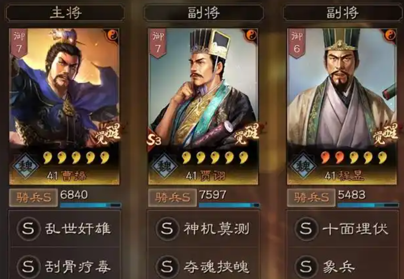 魏法象以曹操、贾诩、程昱为核心,依托象兵减伤、曹操群体减伤、贾诩混乱控制与程昱禁疗真伤形成闭环,对战中依靠持续控制与真实伤害逐步压制对手,常规肉队与慢速法师队难以突破。对抗时优先选择蜀枪体系,赵云自带洞察免疫混乱,关羽具备稳定控制与兵种克制,搭配盛气凌敌限制普攻输出,同时补足八门金锁阵提升先手优势,前两回合即可掌握战局主动权,避免被对方持续拉扯陷入被动。