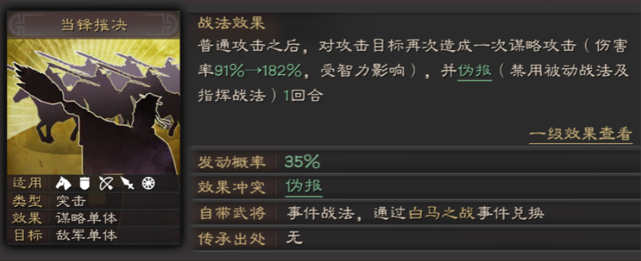战法配置上需将当锋摧决作为核心针对手段,该战法的伪报效果可直接封锁曹操抚辑军民、象兵减伤等指挥被动战法,让魏法象失去核心坦度支撑。输出位可携带熯天炽地、沉沙决水等法系爆发战法,针对象兵怕火的特性叠加灼烧伤害,配合程昱自身负面联动打出爆发伤害,兵书选择以治击乱、神机提升控制与发动效率,进一步放大针对效果。