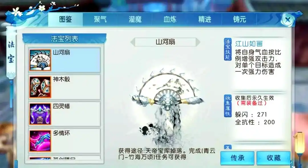 前期过渡阶段,山河扇和神木骰也是不错的选择,它们自带暴击属性,获取方式简单,适合用来积累资源。不过到了后期,还是建议换成紫芒刃或者天琊,毕竟真仙法宝的基础属性和成长空间更大。法宝血炼方面,优先选攻击、暴击、气血和防御,这几个属性对合欢的提升最明显。灌魔技能的话,重点洗出江南、激励这类核心输出技能,能大幅提高连招的爆发伤害。