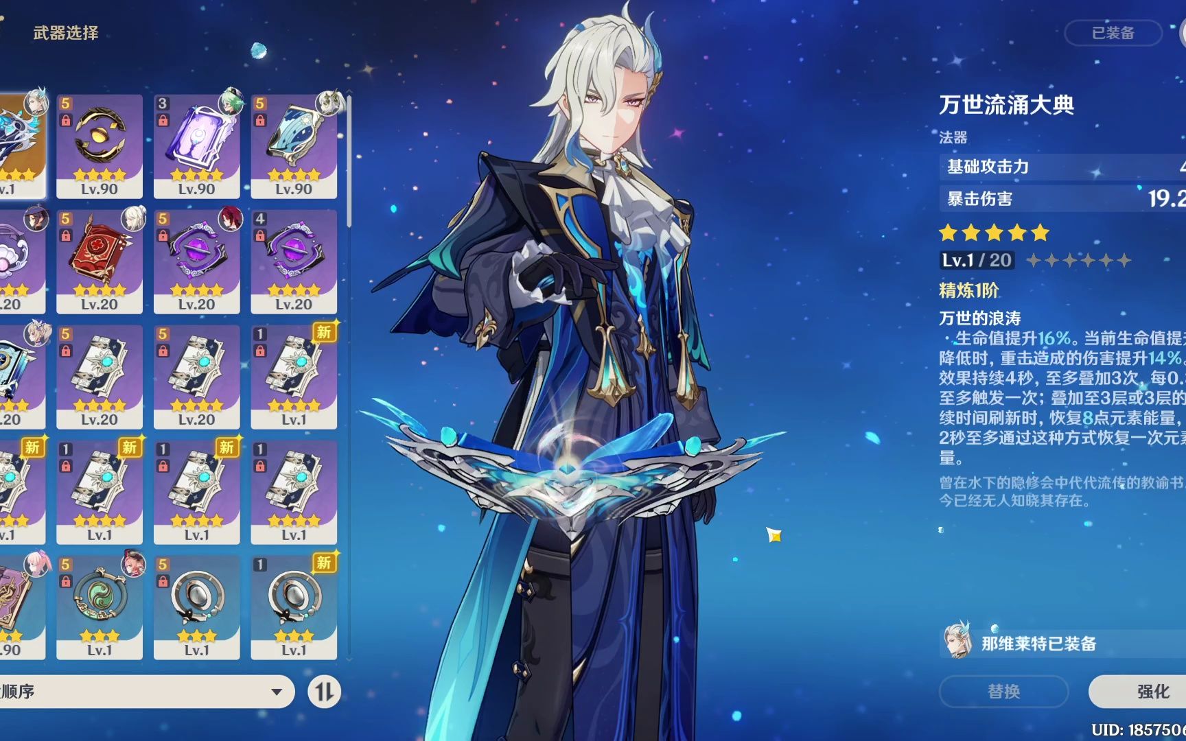那维莱特作为枫丹版本的水系主C,武器选择直接关系到他的输出表现。专武万世流涌大典无疑是最优解,提供高额暴击伤害和生命值加成,特效还能提升重击伤害并优化充能循环,完美契合他的烧血回血机制。如果没有专武,大月卡武器遗祀玉珑是次选,精炼满级后差距不大,36.8%暴击率和64%生命值加成让输出非常稳定,但需要注意后台触发条件。四星武器中试作金珀性价比最高,锻造获取简单,生命加成和回能效果实用,特别适合与芙宁娜组队时快速叠层。