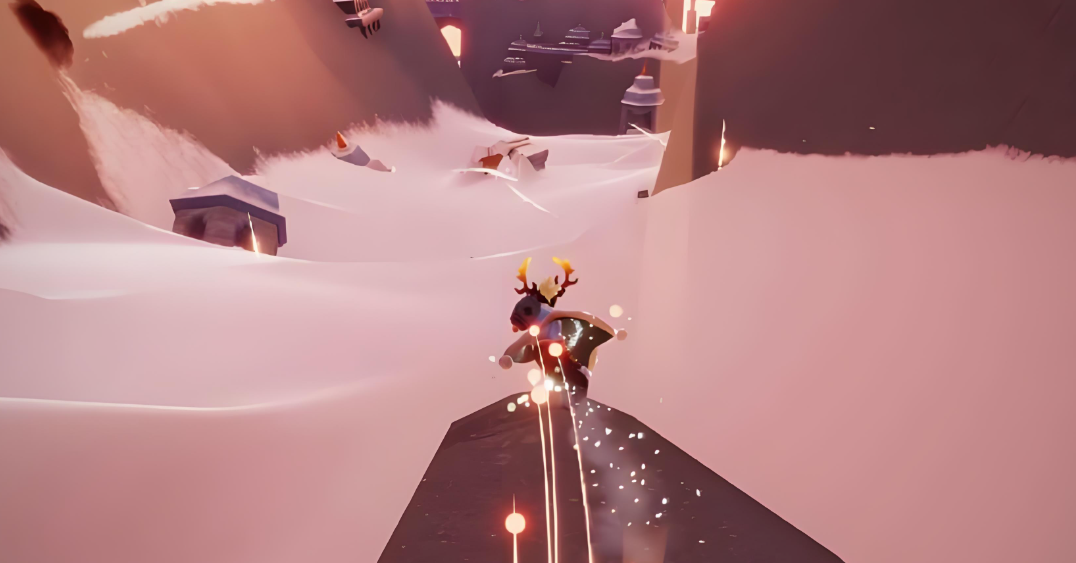 进入赛道后,你会自动开始高速滑行,沿途的亭子和建筑里藏着不少好东西。比如第一个亭子附近有个蓝色光点,跟着它走能解锁先祖记忆,带回终点还能兑换无脸面具。赛道中段还有个明显的平台,上面有光之翼,稍微控制一下速度就能拿到。快到终点时有个大弯道,这里容易错过右侧的隐藏烛火,稍微往右偏一点就能蹭到。