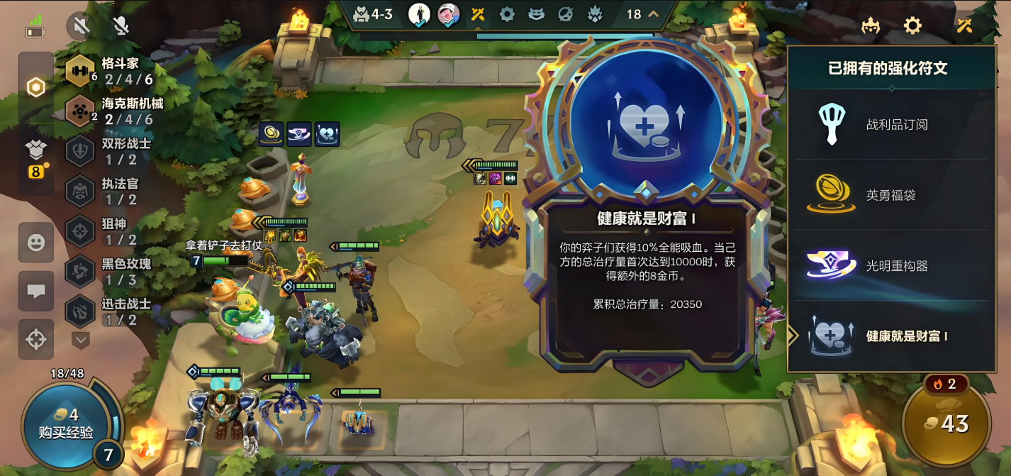 格斗家纹章是提升阵容坦度的核心装备,合成方式简单直接。咱们需要准备一个金铲铲和一件巨人腰带,在合成界面就能轻松搞定。有了它,可以让非格斗家英雄也享受羁绊加成,大幅提升全队生命值。记得优先给前排英雄佩戴,比如俄洛伊或瑟提,能让他们更持久地扛住伤害。