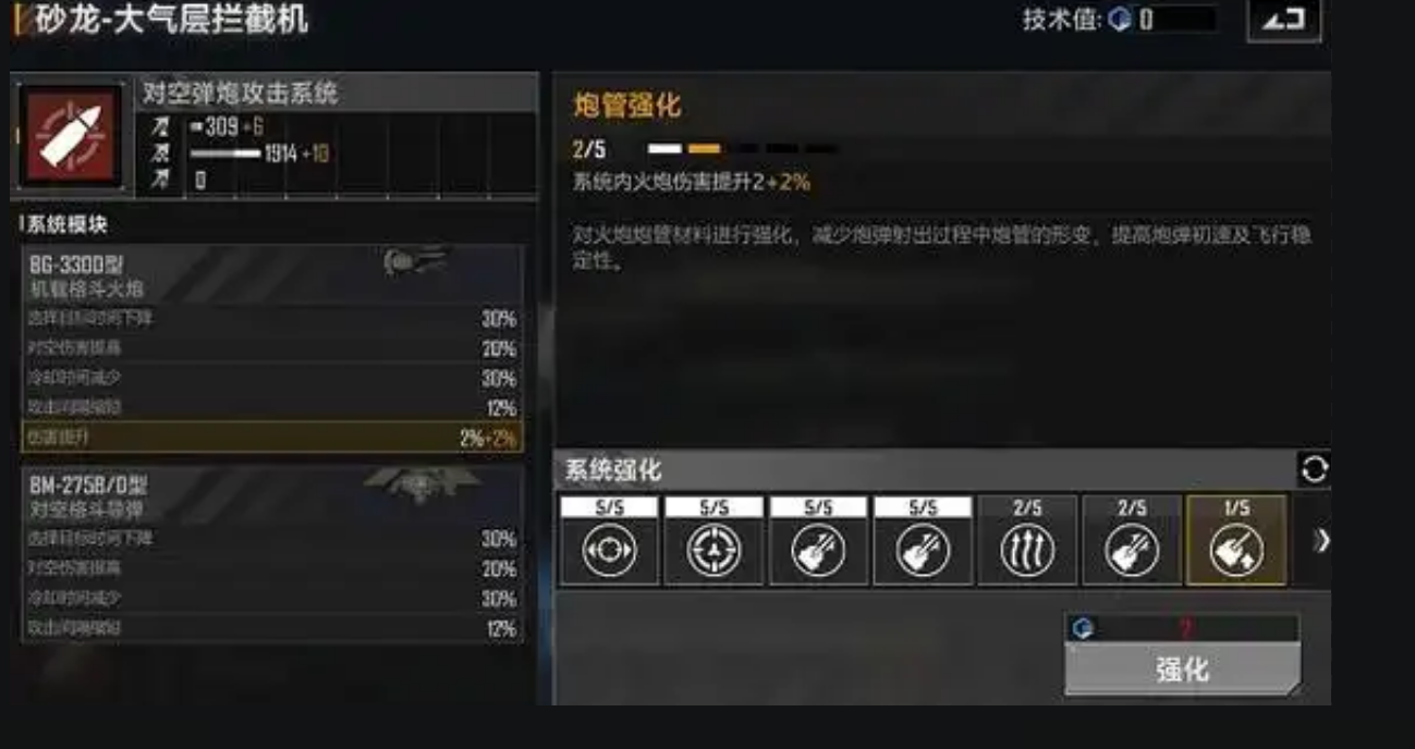 砂龙大气层拦截机作为空战中的主力战机,加点核心思路是优先提升锁定速度和策略技能。武器系统里一定要点出乘胜追击,这个技能能在目标血量低于20%时大幅提升攻击频率,相当于自带斩杀效果。动力系统里减少目标选择时间的两项强化必须点满,这样能更快锁定敌人。装甲系统则根据剩余技能点选择血量或命中强化,但命中提升的实际效果存在争议,建议优先保证生存能力。