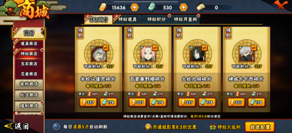 特权商店和礼包购买属于付费途径,VIP玩家可消耗金币购买上忍礼包或S级礼包获取忍玉。玉石商店达到50级后开放,能用五星忍者碎片兑换忍玉并购买其他资源。强者降临等活动奖励包含S忍碎片与忍玉组合,适合资源规划明确的玩家。需注意不同获取途径的冷却时间和次数限制,例如小队突袭每日最多7次,合理分配体力与金币是关键。