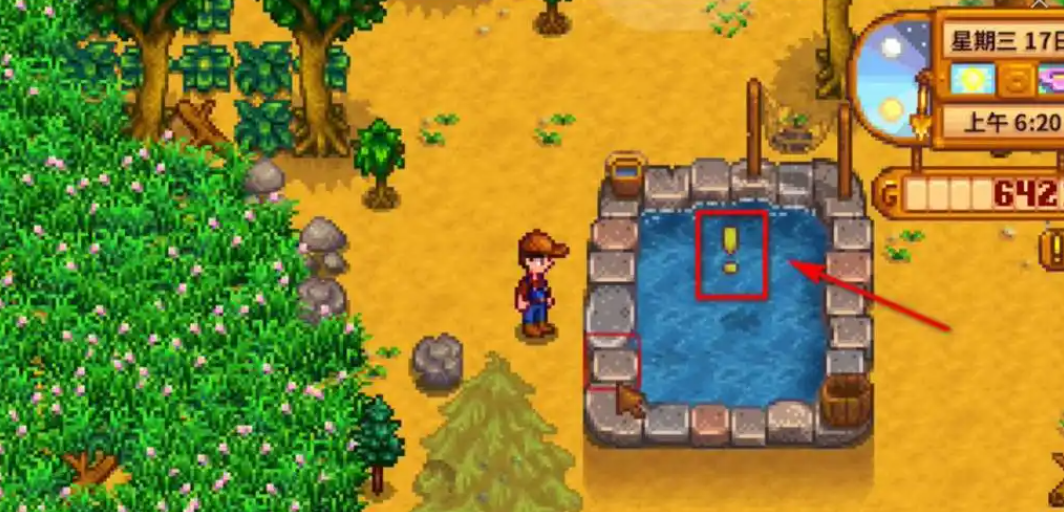 填水池需要先建造鱼塘,通过与罗宾对话选择建筑选项完成。建造鱼塘需要5000金币、200石头、5海藻或5珊瑚,等待3天后即可使用。选址建议靠近农田以便日常管理,鱼塘初始容量为3条鱼,部分特殊鱼类如鲟鱼、岩浆鳗鱼等初始仅能容纳1条。填充水池时需用钓竿将目标鱼类放入,不同鱼类会影响产出物品的类型和概率。