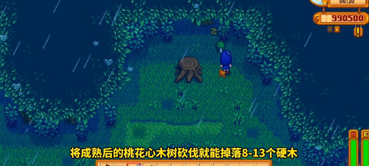 桃花心木种子是另一种高效获取硬木的途径。砍伐大树桩时有概率掉落该种子,将其种植在农场并施加树肥可加速生长。成熟后的桃花心木砍伐后可获得8-12个硬木,并可能再次掉落种子,形成循环种植。这一方法适合长期积累硬木,但需注意预留种植空间。