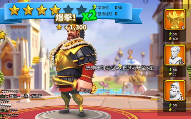 星星的积累方式多样,可以通过击败野蛮人、参与联盟活动或完成日常任务获取。高品质武将升星所需的资源更多,但带来的战力增幅也更显著。比如传说武将升到满星需要大量经验,而史诗或精英武将相对容易培养。升星过程中存在跳星技巧,合理利用幸运值机制能节省资源,比如在经验达到60%-80%时放置六个星光雕像,有概率直接跃升到更高星级。