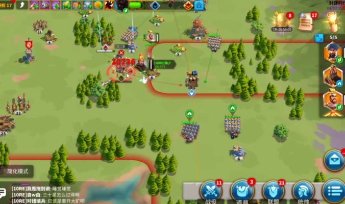 低级据点如小型野蛮人营地可单人用T4骑兵快速清理,而大型据点如野蛮人要塞需联盟协作,推荐步兵抗伤搭配骑兵输出。统帅天赋优先点满打野机动骑兵等增益,曹操、源义经等打野将领先锋,理查一世等高防御统帅负责驻防。注意避开箭塔和游荡者,直接围攻首领以降低战损。