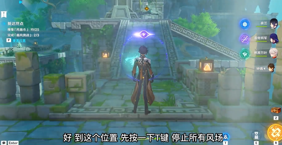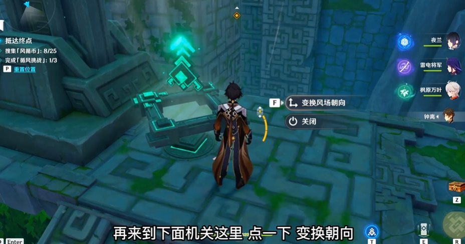 关键操作在于合理利用止风枢暂停风场干扰。例如在第二房间拾取高处的风循币时,需先停止风场再调整拦风枢方向,否则会被气流阻碍。浮风台的升降机制也需注意,部分平台需等待其完全上升后再行动。若携带温迪、万叶等角色,可通过技能规避部分机关操作,但需确保不影响挑战触发条件。