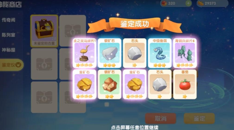 鉴定仪界面会显示当前持有的未鉴定古董数量,单次最多可同时鉴定10个。若出现网络延迟导致鉴定中断,重新进入界面会继续未完成流程。部分古董碎片需集齐整套才能兑换奖励,例如石柱碎片需8个、陶罐碎片需5个。未及时兑换的碎片会永久保留,无需担心过期问题。